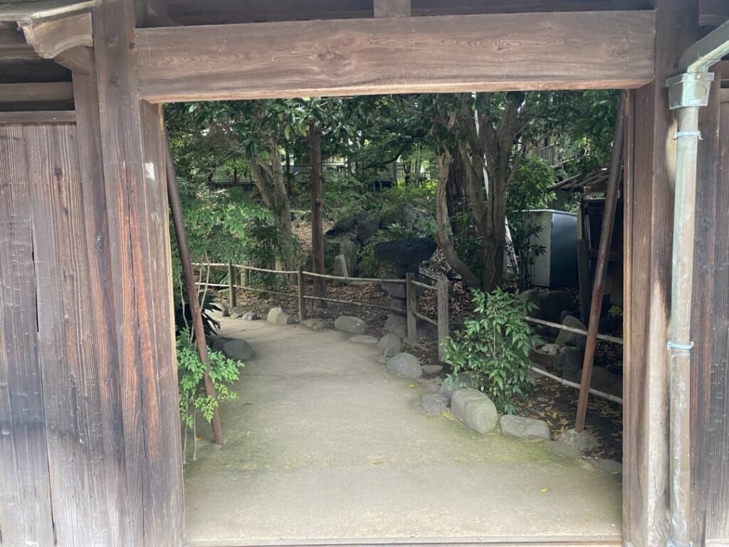 湧水広場の先、公園の南側には、八つ橋があります。かつて泉頭城と戸倉城を結ぶ舟付場であったとのこと。建物の造りも情緒が溢れており、歴史を感じながら散策を愉しめます。